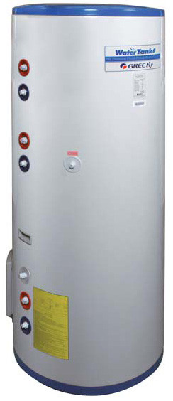 Бак об'ємом 200 літрів оснащений теплообмінником, теплоносій якого віддає теплову енергію проточній воді від гідромодуля для потреб ГВП. Вода в баку підігрівається зануреними Тенами до температури 80⁰С. Можна використовувати як оригінальні ємності Gree Versati, так і придбати баки для нагріву води іншого виробника. Вони легко комутується через силовий кабель в блоці управління гідромодуля.